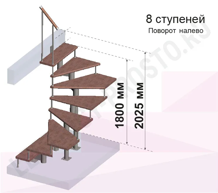Высота лестницы 1800 - 2025 (8 ступеней) мм