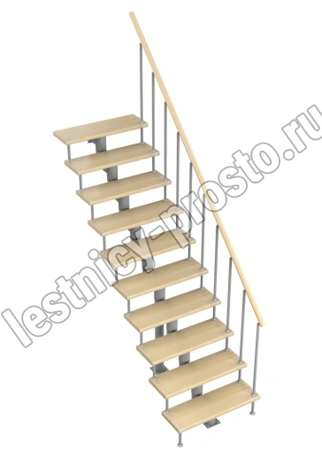 Модульная лестница Стандарт 2250-2350, Серый, Сосна, Нержавеющая сталь