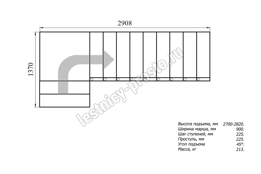 Модульная лестница Статус 225 2700-2820, Белый, Сосна, Крашеная, Без Ступений