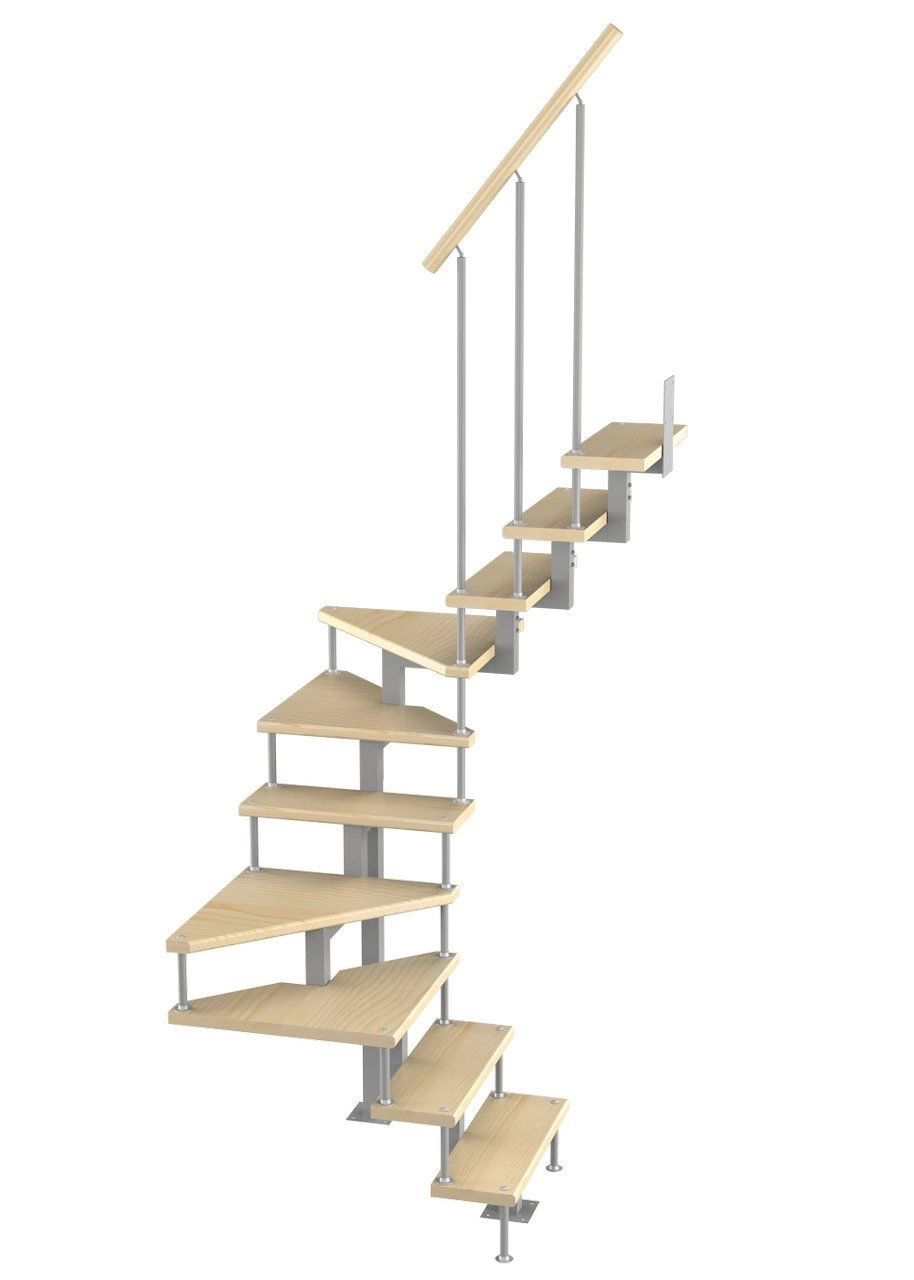 Модульная малогабаритная лестница Эксклюзив 2250-2475, Серый, Сосна, Крашеная