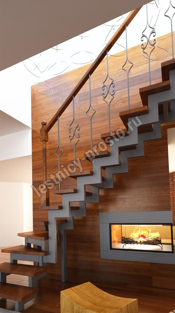 | Лестница Prosto Due 40×80 г-образная, ступени хвоя |