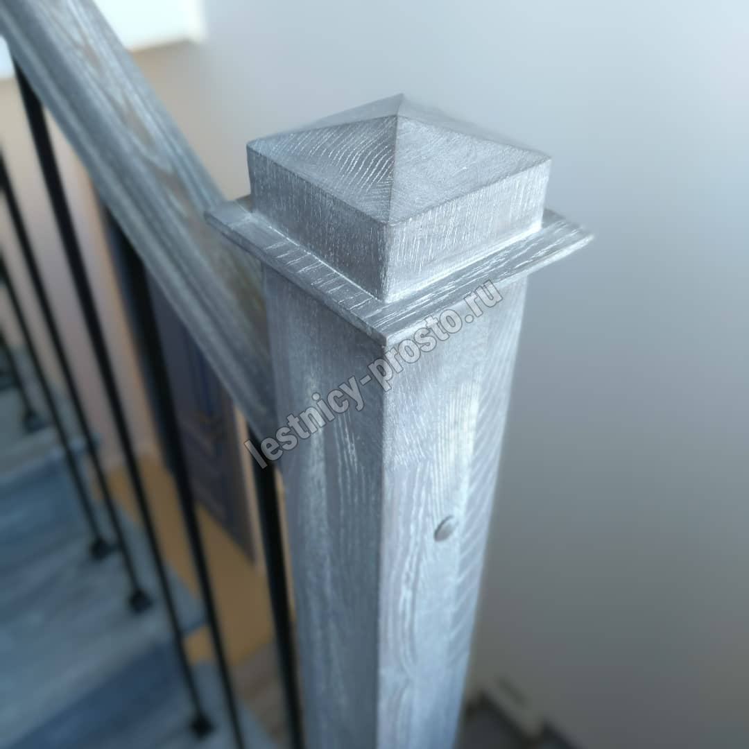 Подступенники, фальш-косоуры и сапожки (пристенной плинтус) выполнены из дуба.