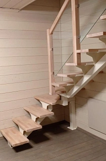 Лестница на второй этаж с ограждением из стекла LP-1-4