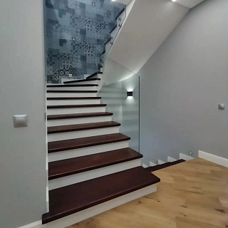 Лестница из стекла/дуба/керамогранита с подстветкой LP-1-53