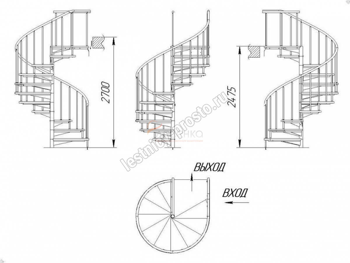 Винтовая лестница ЛЕС-1,8 высота 2475-2700, Серый, Бук