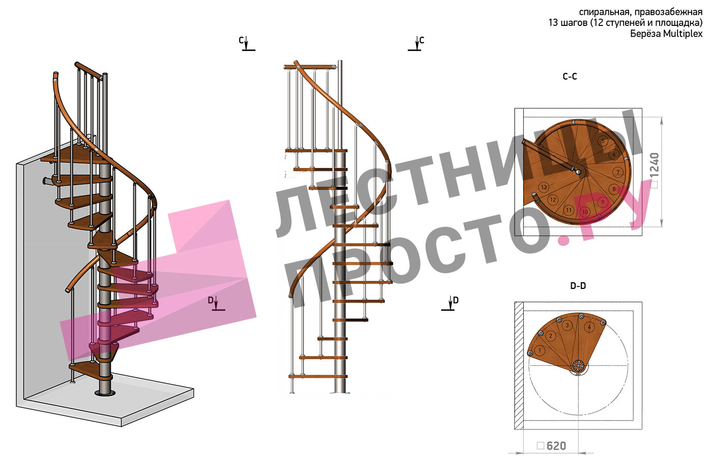 Решение об ориентации поворота лестницы принимается при сборке (комплект собирается и в правозабежную, и в левозабежную лестницу)