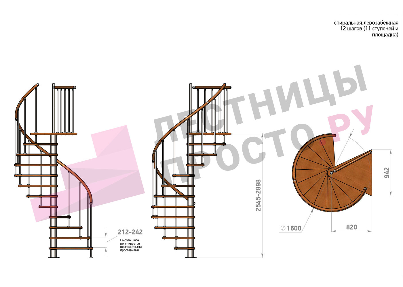 Винтовая лестница Prosto Spiral Black/Высота 2545 - 2898 мм