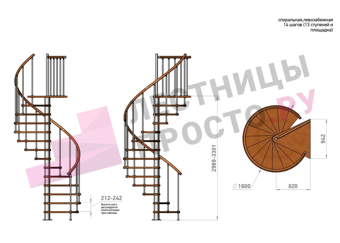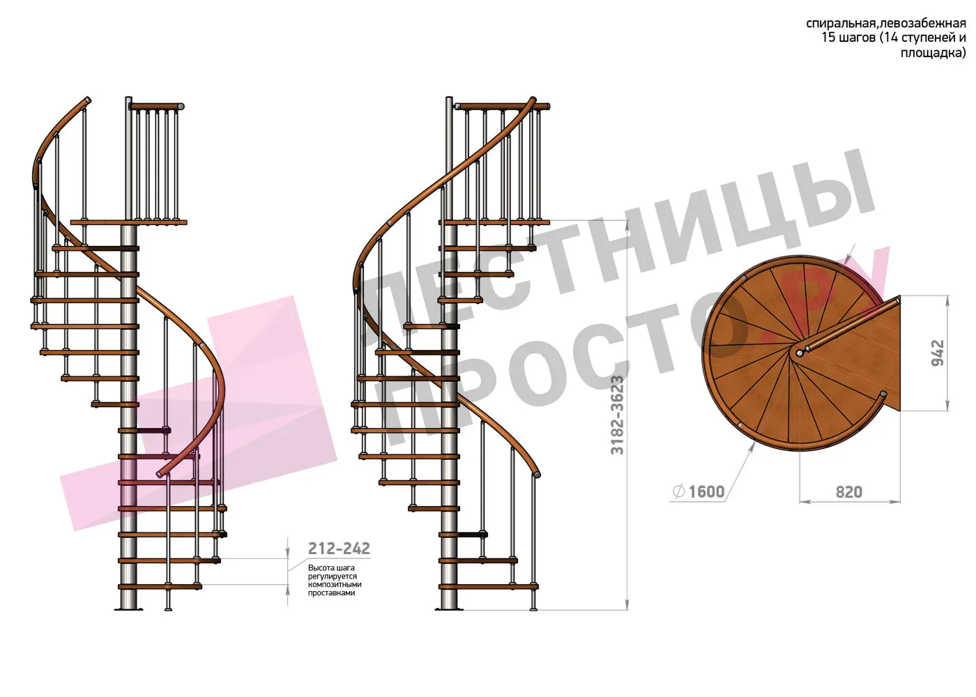 Винтовая лестница Prosto Spiral Black/Высота 3182 - 3623 мм
