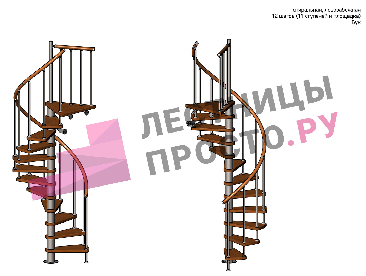 Левая, d=120см, 11 ступеней + площадка