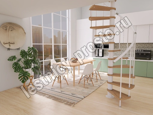 Винтовая лестница Prosto Spiral White D120см, h260.5-304.6 см, бук