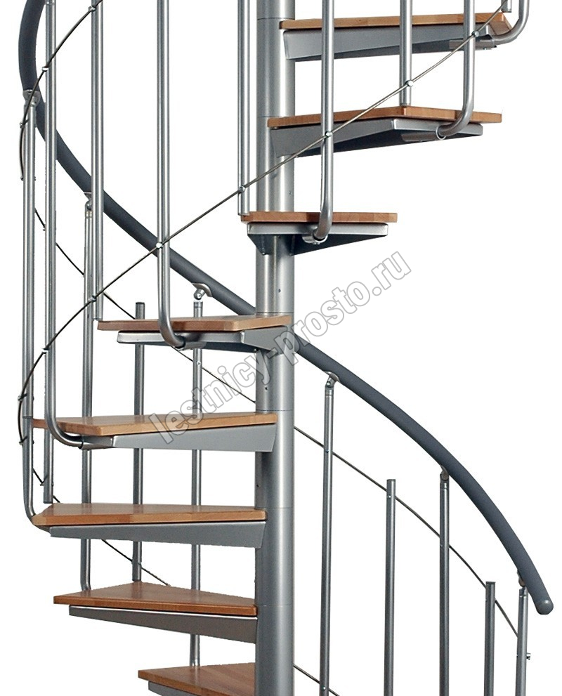 Винтовая лестница Solo vertical серебро, медовая ольха