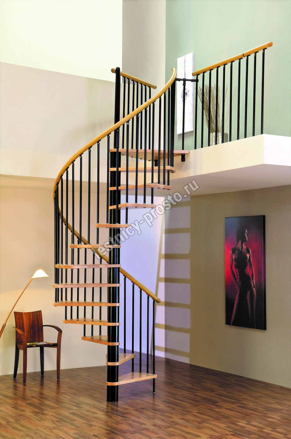Винтовая лестница SPIRAL WOOD d160 см, чёрная, лакированный бук