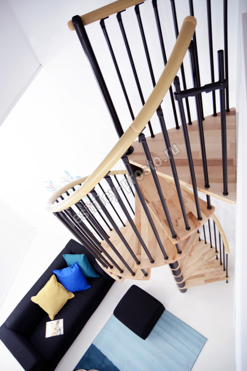 Винтовая лестница SPIRAL WOOD d120 см. чёрная, лакированный дуб