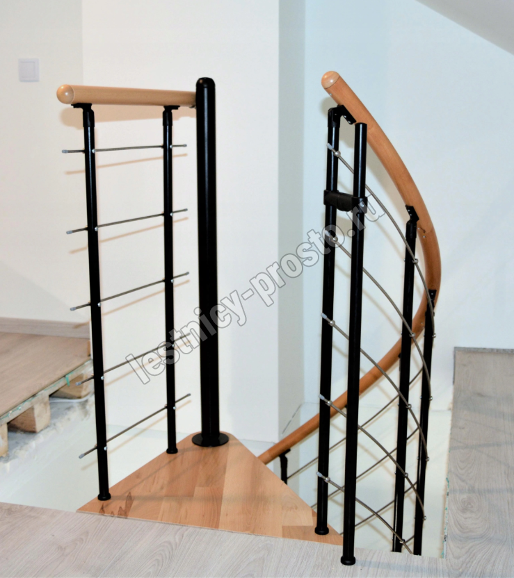Cтупени и поручень изготовлены из массива бука и покрыты специальным лаком от компании Минка, который предотвращает царапины, сколы или стирание поверхности при интенсивном использовании лестницы.